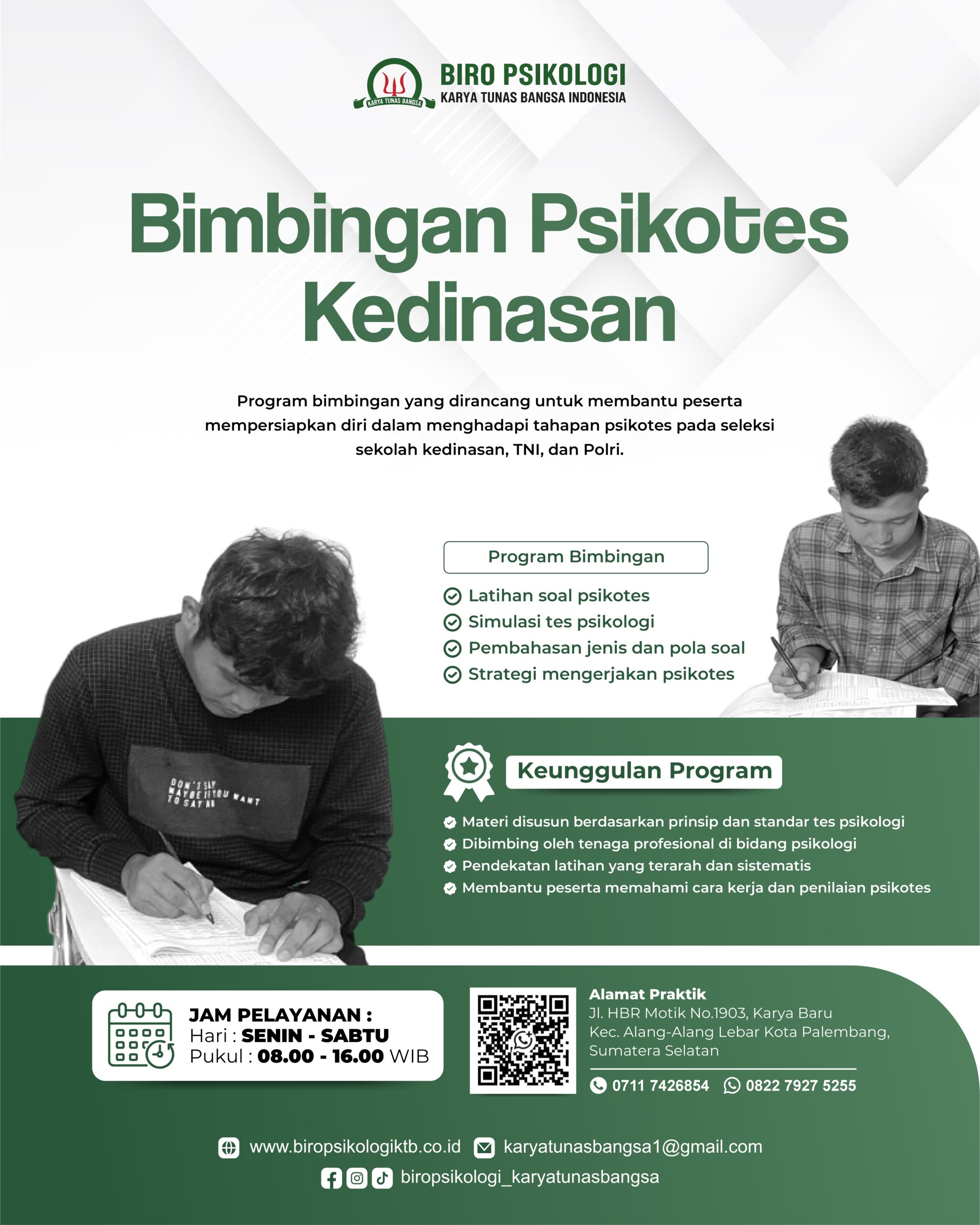 Program persiapan psikotes secara terarah dan sistematis untuk membantu peserta memahami pola soal, meningkatkan kesiapan mental, serta membangun strategi pengerjaan tes.